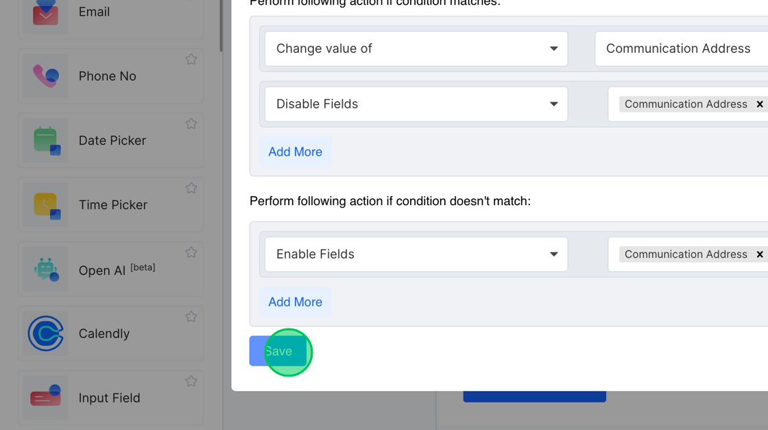 - Once you’ve selected the “Disable Field” action, a new dropdown list will appear showcasing the available fields.