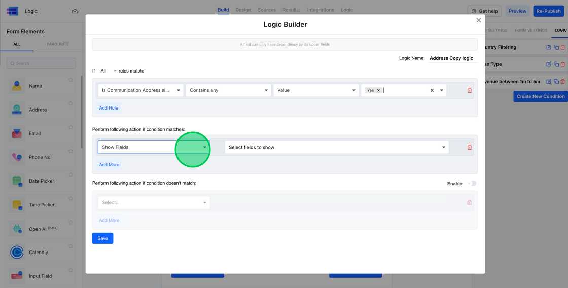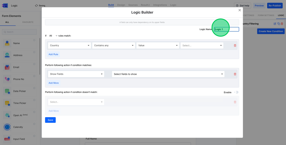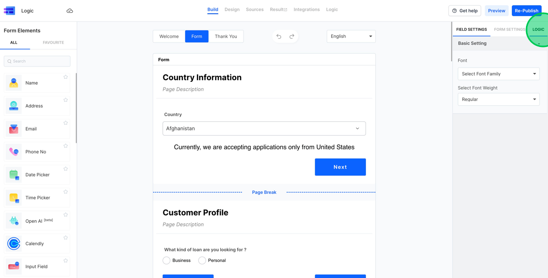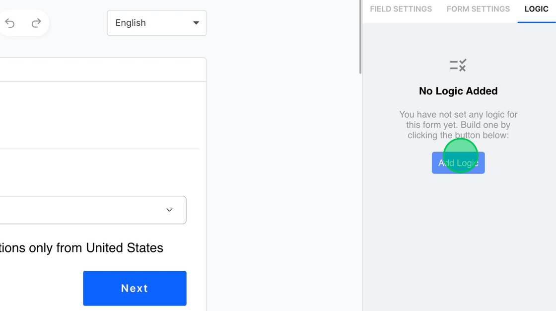 1. Having completed the form setup, we can now move on to implementing logic. To do this, simply select the “Logic” tab located on the right sidebar.