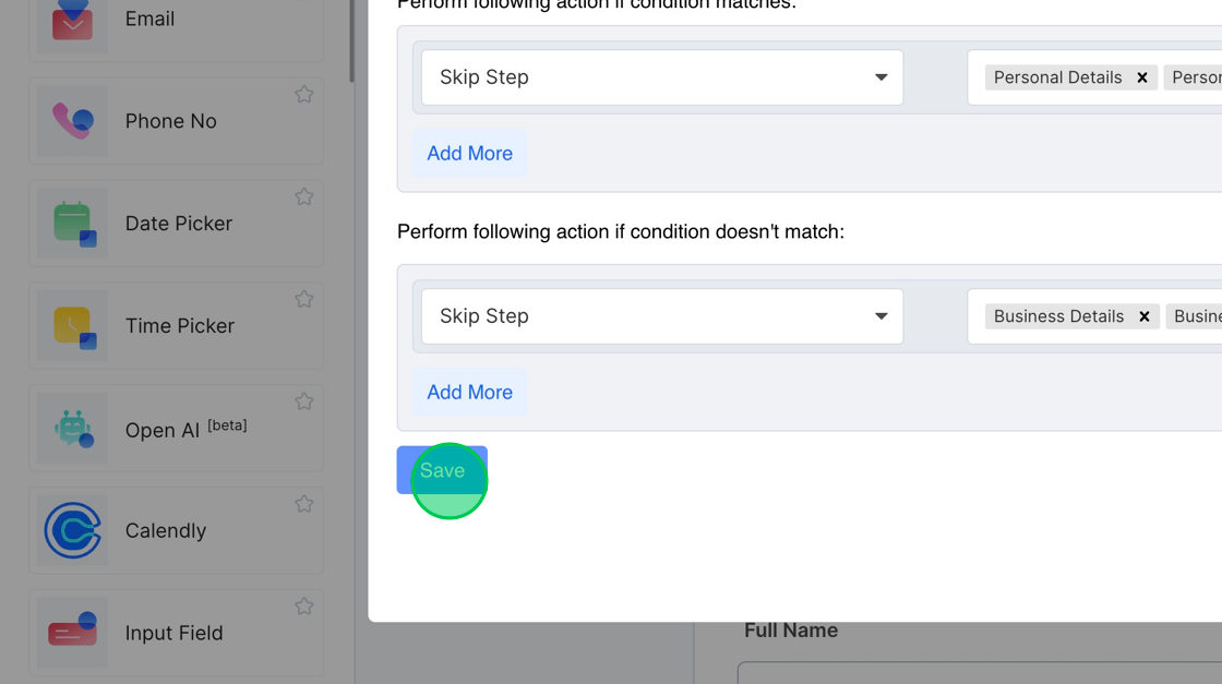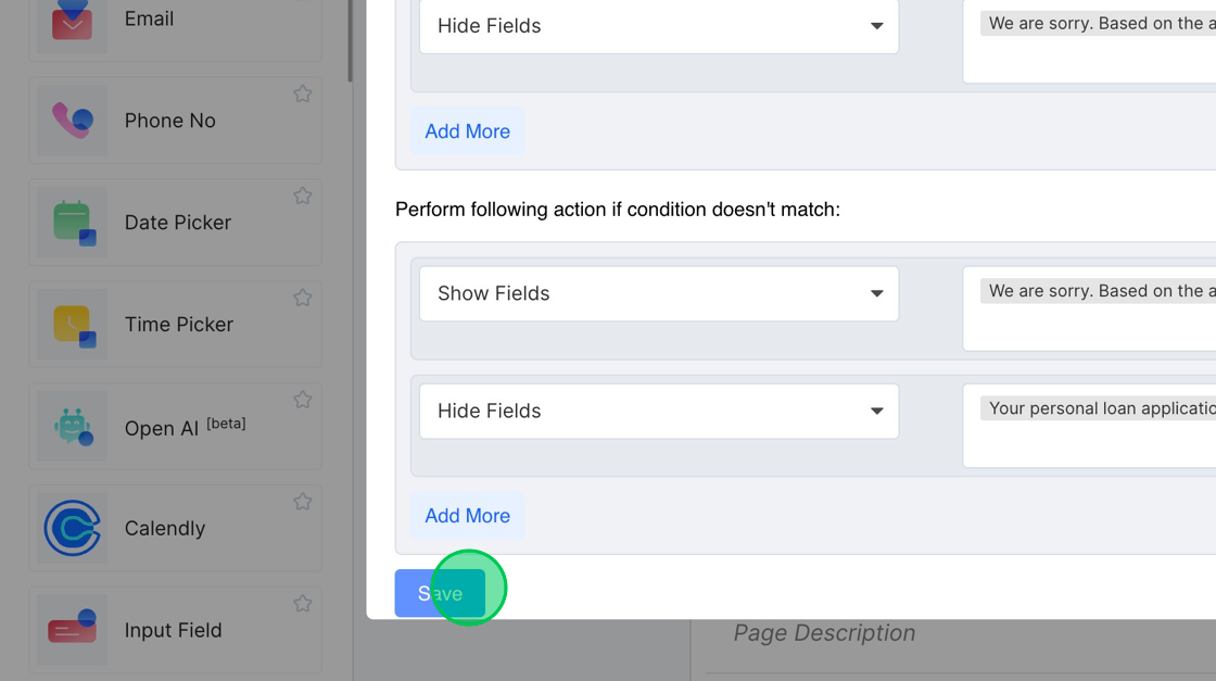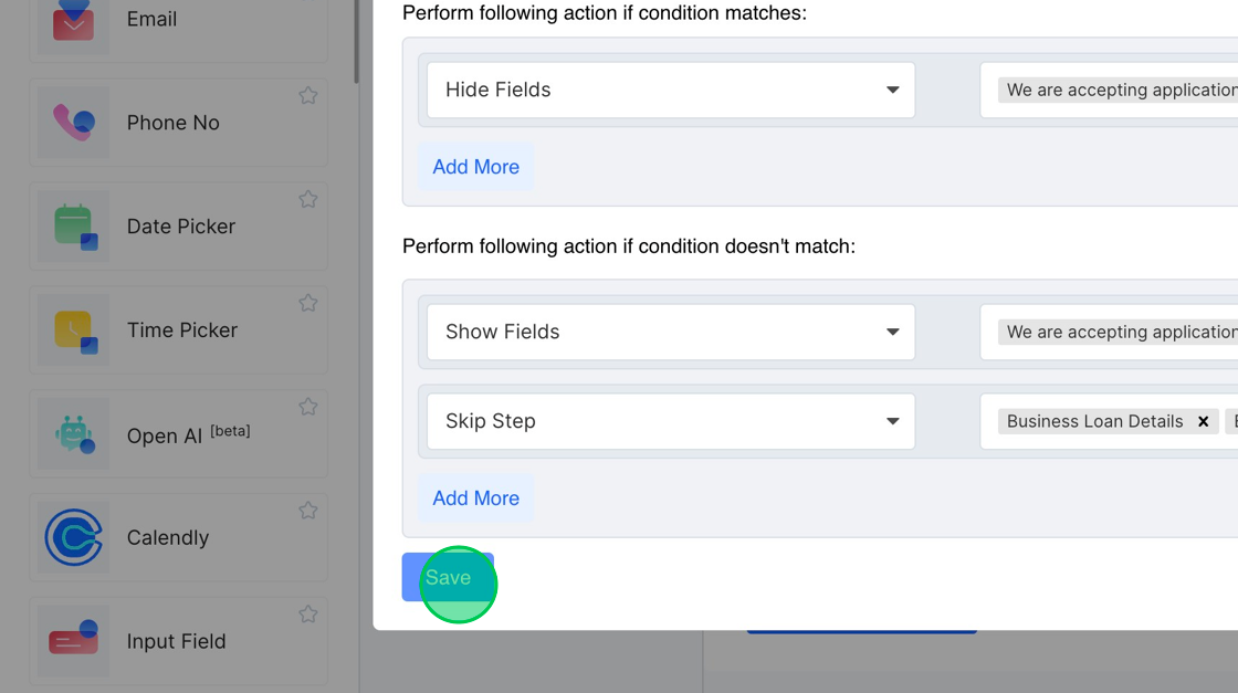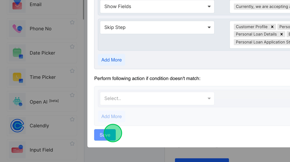 16. When the set condition isn’t met, we’ll hide all steps associated with “Business Loan”. Given that our primary condition checks if the Loan Type is “Business” and conceals all steps related to Personal Loan, the “condition doesn’t match” section will act when the Loan Type is “Personal” and will subsequently hide all steps linked to Business Loan.