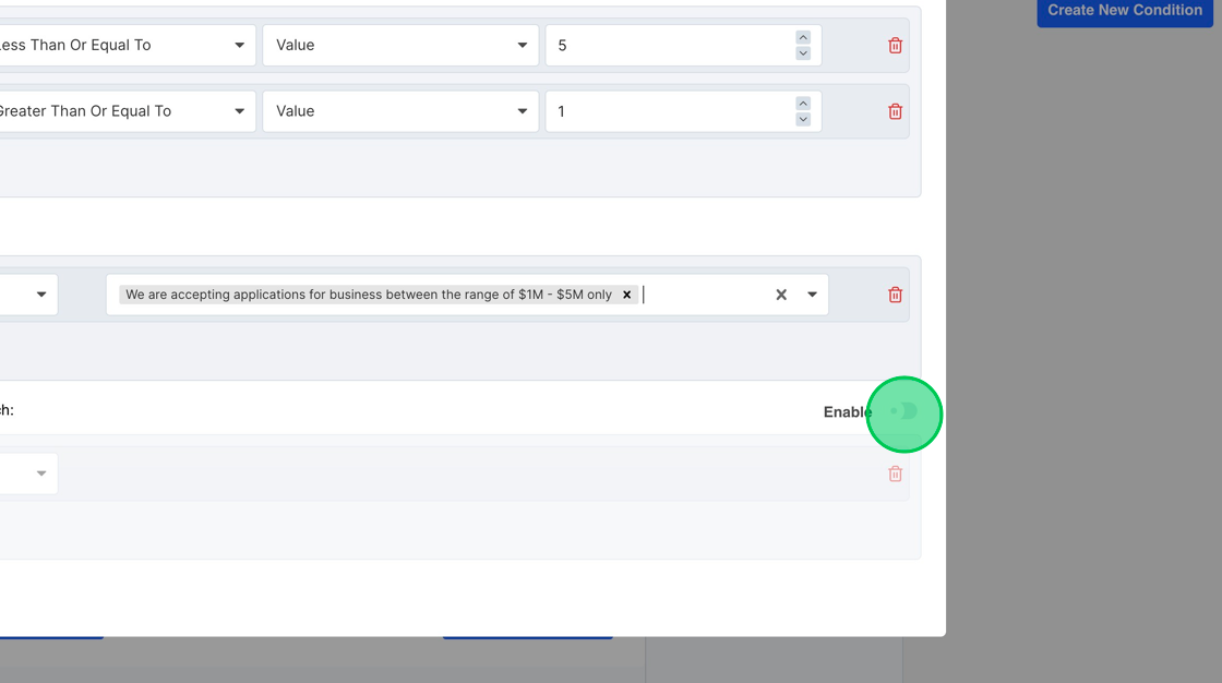 18. Next, we’re going to set up logic to evaluate a business’s revenue. We’re targeting businesses that report revenues between 1M to 5M. We’ll use conditions to check these values.