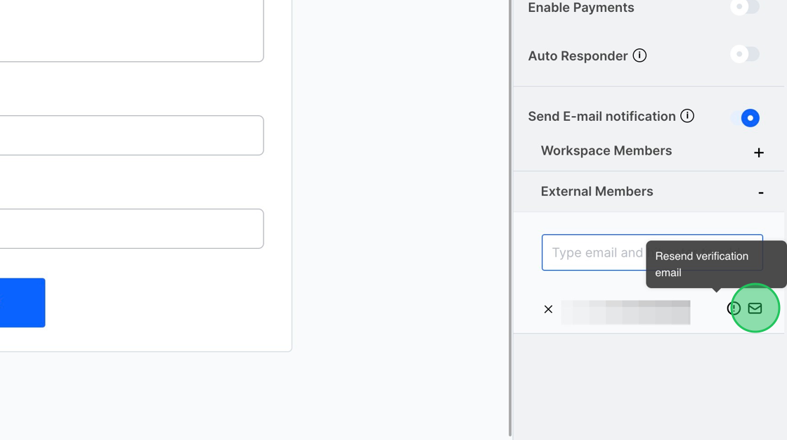 6. For the privacy and protection of the individual whose email is provided, MakeForms dispatches a verification email to that address. MakeForms will not send any alerts to individuals who haven’t confirmed their email. Until the email is authenticated, an exclamation symbol and a “Resend verification email” button will be visible.